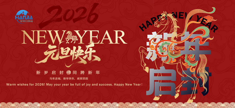 2026 жылдың 1 қаңтары Қытайдың дәстүрлі Жаңа жыл мерекесін атап өтеді. Жыл сайын осы уақытта біз жаңа жылға сәттілік әкелеміз және бұрынғыдан жақсы нәтижелерге қол жеткіземіз деп үміттеніп, жетістіктеріміз бен кемшіліктеріміз туралы ойлану мүмкіндігін пайдаланамыз. 2025 жыл аяқталды және Jinhua Hanjia Commodity Co., Ltdurny компаниялары өткен жылға ұқсайды. Өндіріс және импорт-экспорт саудасымен айналысатын біздікілер жаһандық экономикалық жағдайдың әсерінен күрделі жылды бастан өткерді.