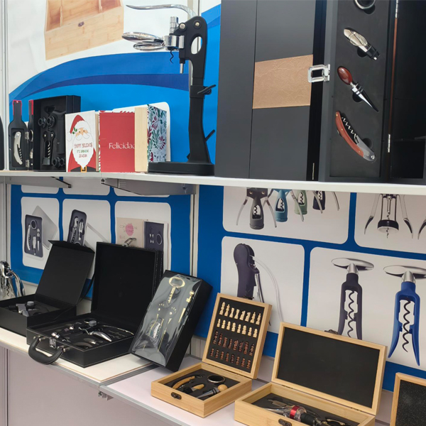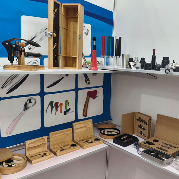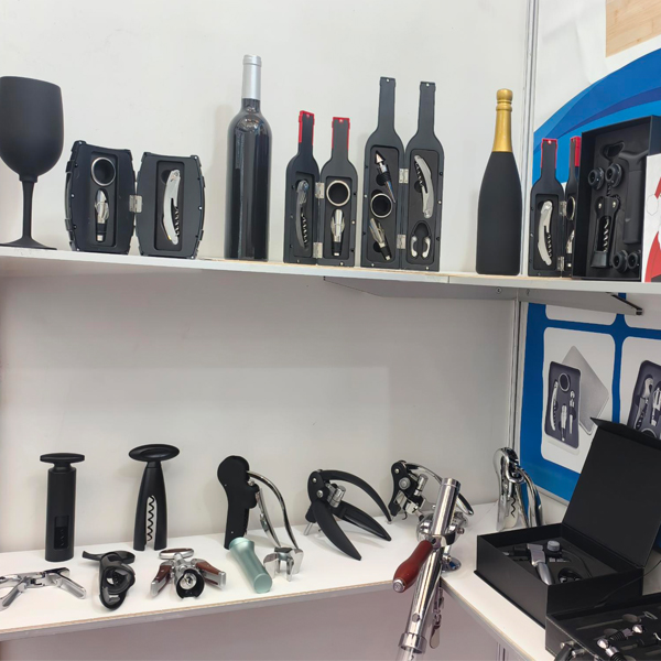 Біздің өнім ассортименті әртүрлі тот баспайтын болаттан жасалған және легирленген шарап ашқыштарды, тығындарды, шампан құралдарын, сарымсақ сығымдарын, жаңғақ крекерлерін, консервілерді ашқыштарды, тазартқыштарды, ет тазартқыштарды, коктейльді шейкерлерді, тот баспайтын болаттан жасалған колбаны және ағаштан немесе ПУ-дан жасалған әртүрлі шарап жиынтықтарын, сондай-ақ шарап қораптарын қамтиды.
