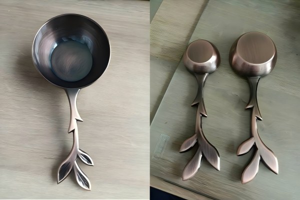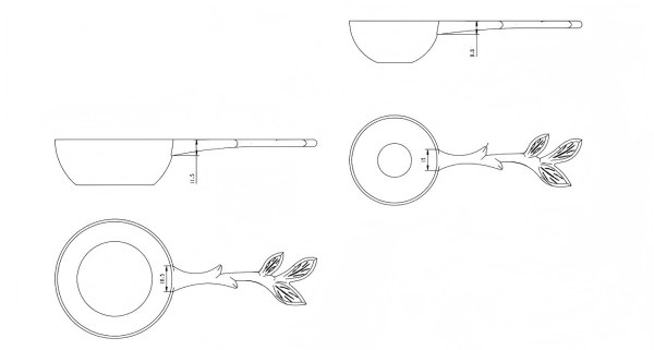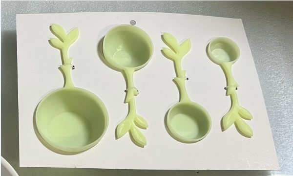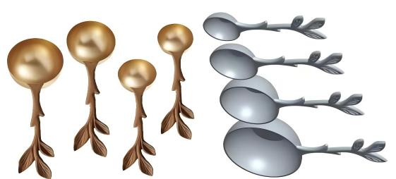 Клиенттің төрт өлшеу қасықымен бұл жолы шығындарды есептеу үшін дәл 3D сызбалары жоқ.