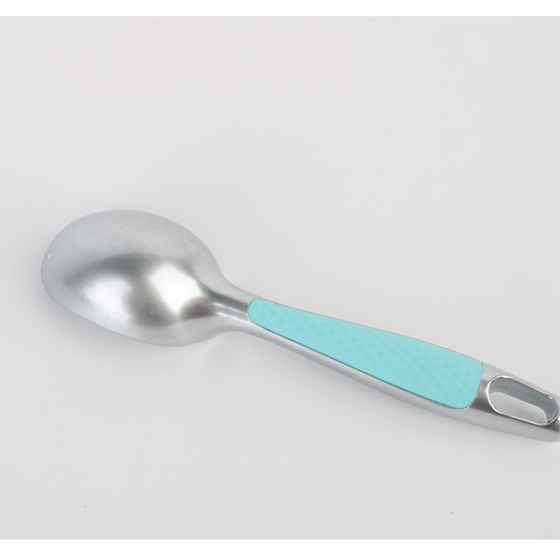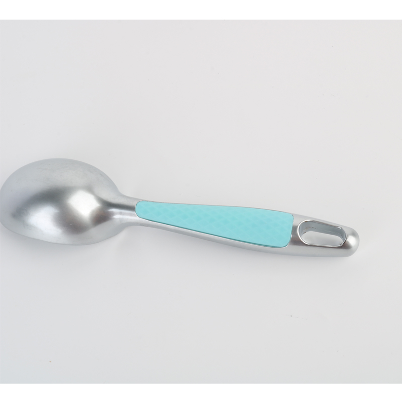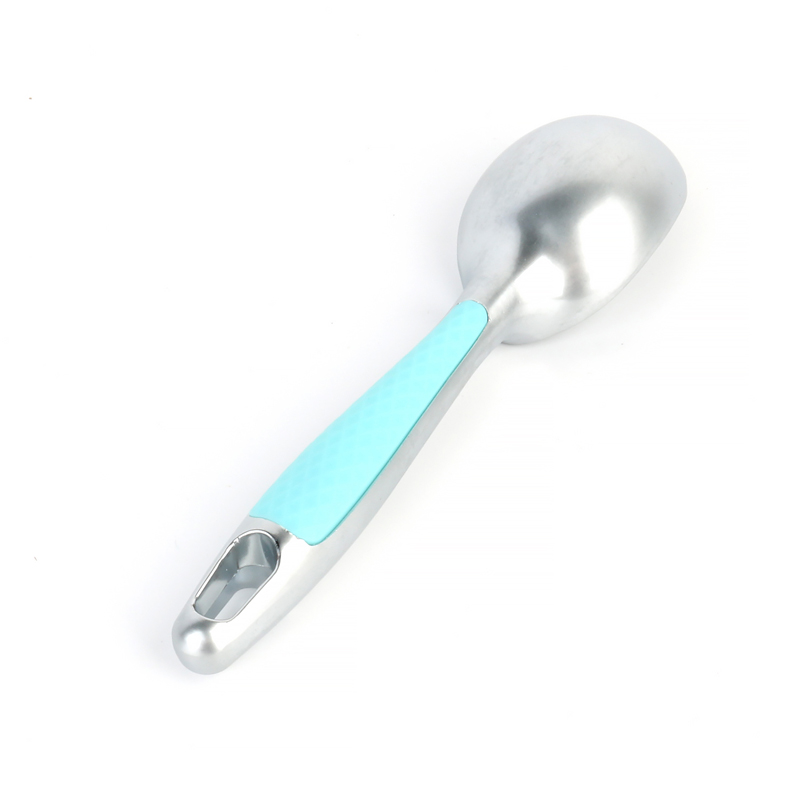 Jinhua Hanjia Commodity Co., Ltd. шарап ашқыш, пицца кескіш, ет ұнтағыш, жаңғақ крекер, сарымсақ сығымдағыш, консерві ашу, тазартқыш және т.б. арқылы 10 түрлі өнімнен тұратын үй асханасының жан-жақты сериясының бір бөлігі ретінде ыдыс жуғышта жууға болатын ыңғайлы ұстағышы бар мырыш қорытпасынан жасалған балмұздақ қасықтарын ұсынады. Функционалдық пен эстетиканы жақсартатын біркелкі бөлінген ромбтардың геометриялық үлгісі бар эргономикалық пластикалық тұтқалар. Бұл дизайн макароннан шабыттандырылған түстер палитрасымен үйлескенде, коллекцияның жалпы талғампаздығын арттырады, көрнекі және заманауи көрініс жасайды.