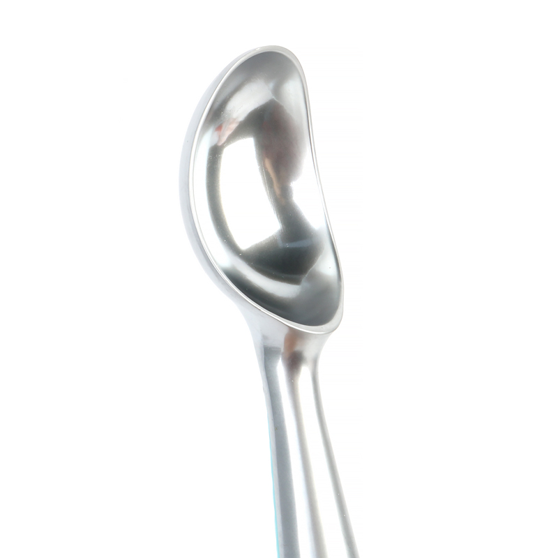 Ыдыс жуғыш машинада жууға болатын ыңғайлы ұстағышы бар мырыш қорытпасынан жасалған балмұздақ қасық үшін оның салмағы 88 грамм және ұзындығы 16,5 сантиметр. Тұтқаның соңында ілулі тесік жасалған, оны кез келген үй жағдайында сақтауға және ұйымдастыруға ыңғайлы етеді, сонымен қатар мұқият кептіру үшін тазалаудан кейін оңай іліп қоюға мүмкіндік береді. растау.